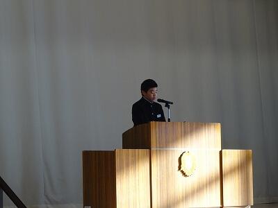 始業式では、各学年の代表生徒が抱負を発表しました。