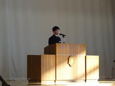 最後に、新生徒会長から新しい生徒会が立ち上がり、その意気込みが発表されました。