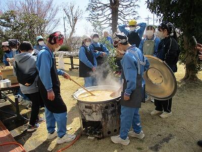 「炊き出し体験」では、豚汁作りと非常食を温める体験活動を行いました。