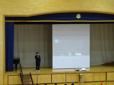 生徒指導主事の先生から、日高中学校での学校生活について詳しい説明がありました。