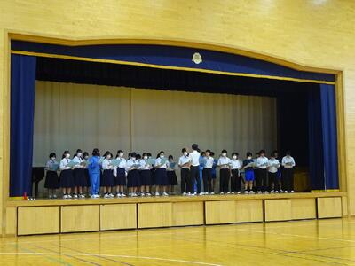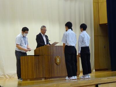 後期学級委員の任命式が行われ、校長先生から任命書が手渡されました。